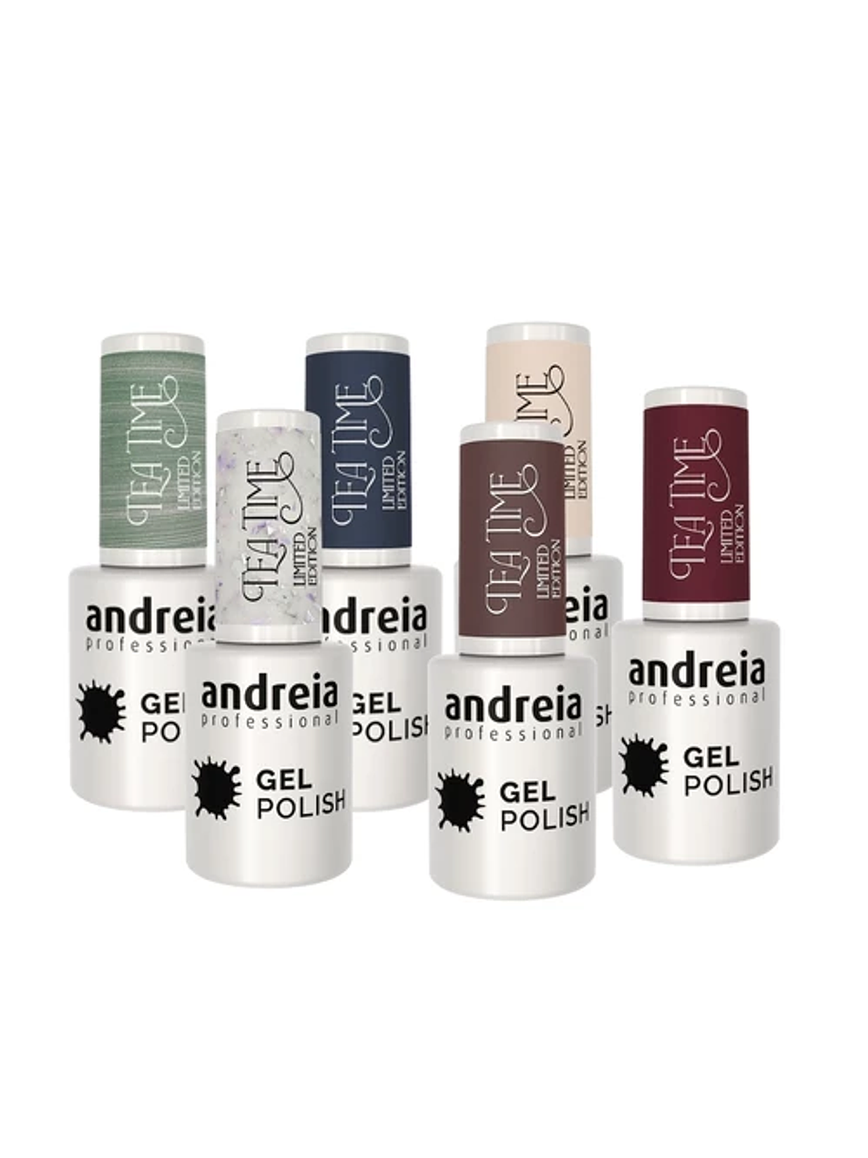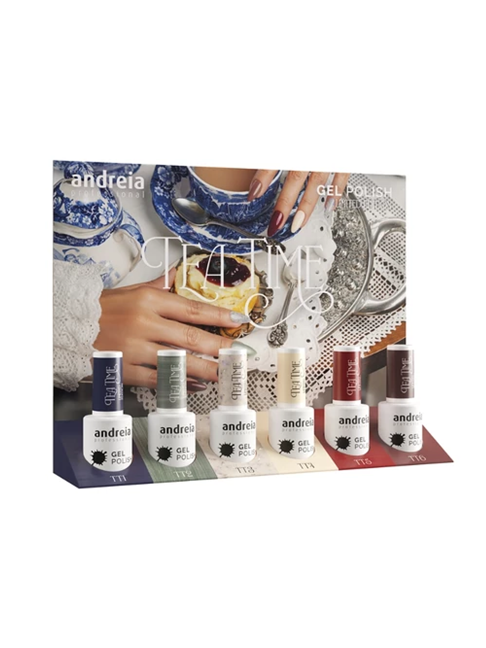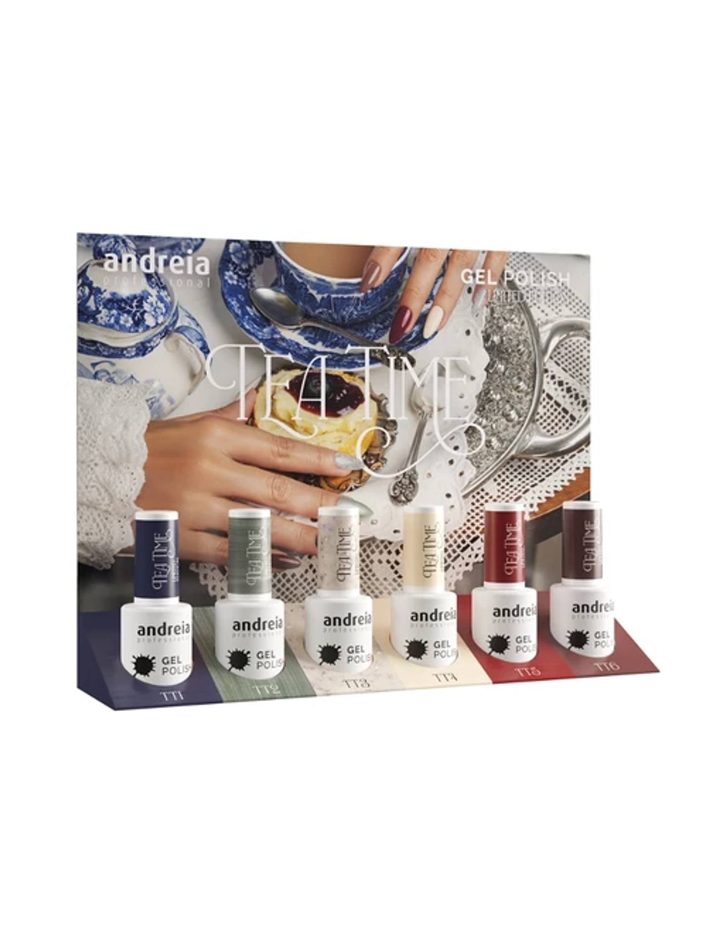Esta edição limitada Tea Time Collection da Andreia ganha ainda mais destaque com a oferta do mini expositor exclusivo, perfeito para organizar e valorizar as 6 cores da coleção.