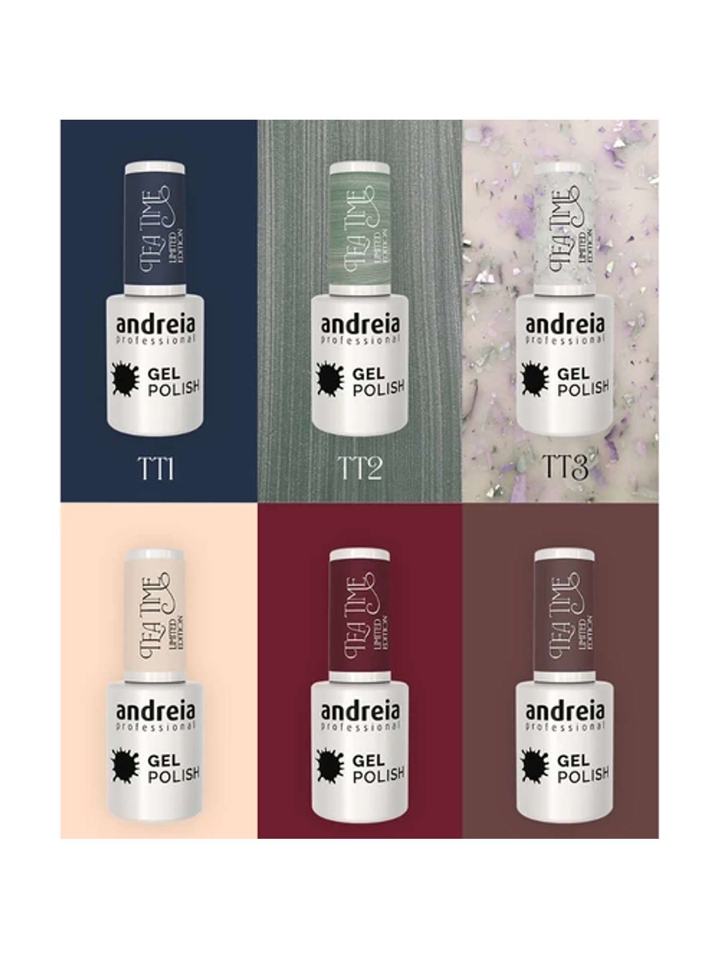 A coleção Tea Time da Andreia é um convite para transformar cada manicure num momento de prazer. Seis cores únicas em edição limitada, inspiradas na porcelana delicada, nos scones quentes e nas compotas artesanais, trazem um charme intemporal às suas mãos.