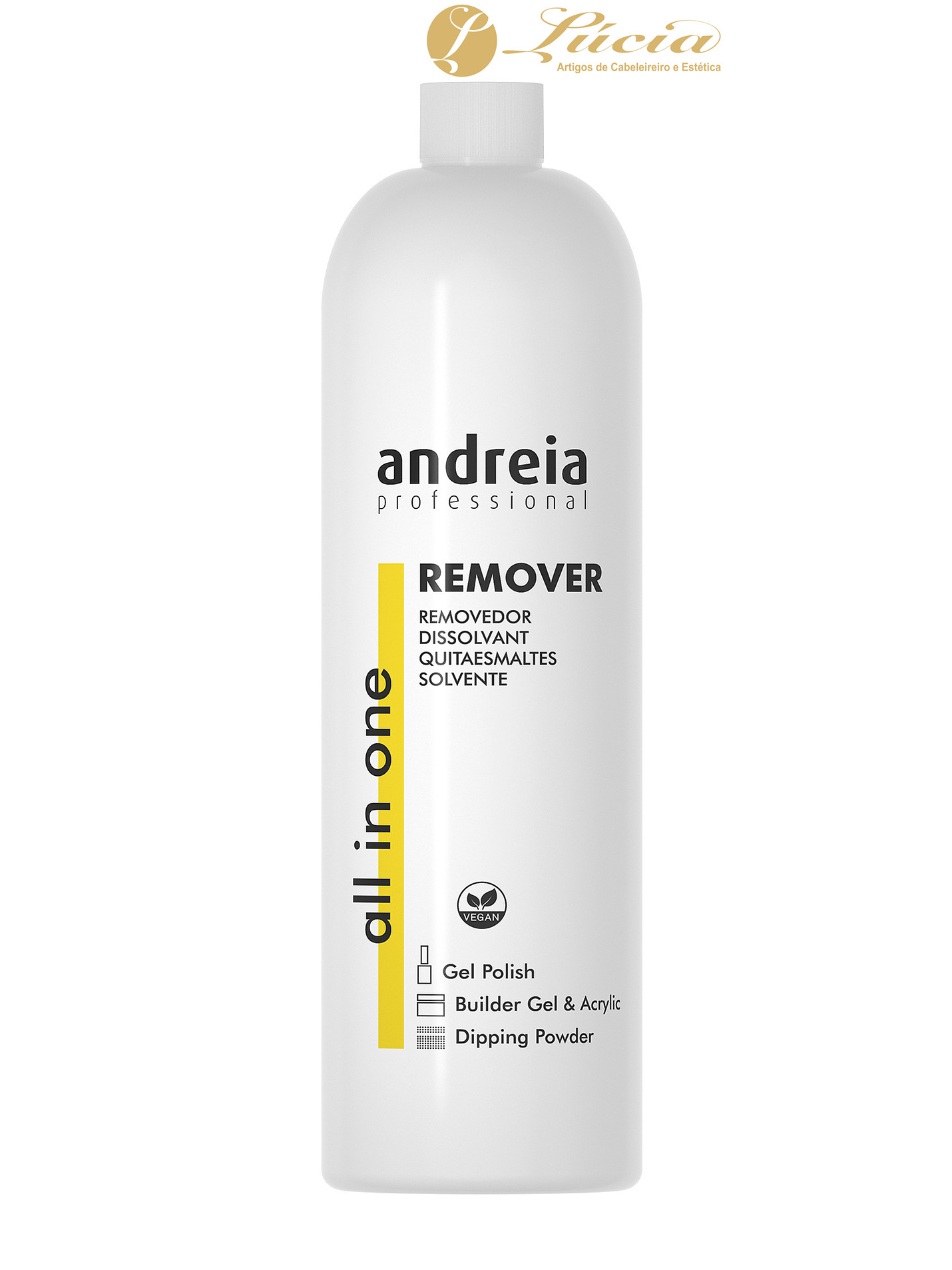 Modo de usar: Com um buffer ou lima desbastar a camada de gel da superfície da unha, tendo cuidado para não atingir a unha natural. Embeba um algodão com o Removedor de Verniz Gel Andreia, aplique na unha e envolva com prata. Curar de 5 a 15 minutos sob luz UV ou de 5 a 8 minutos sob luz LED. Remova o gel excedente da unha com o auxílio de uma lima ou pau de flor de laranjeira, sem atingir a unha natural.