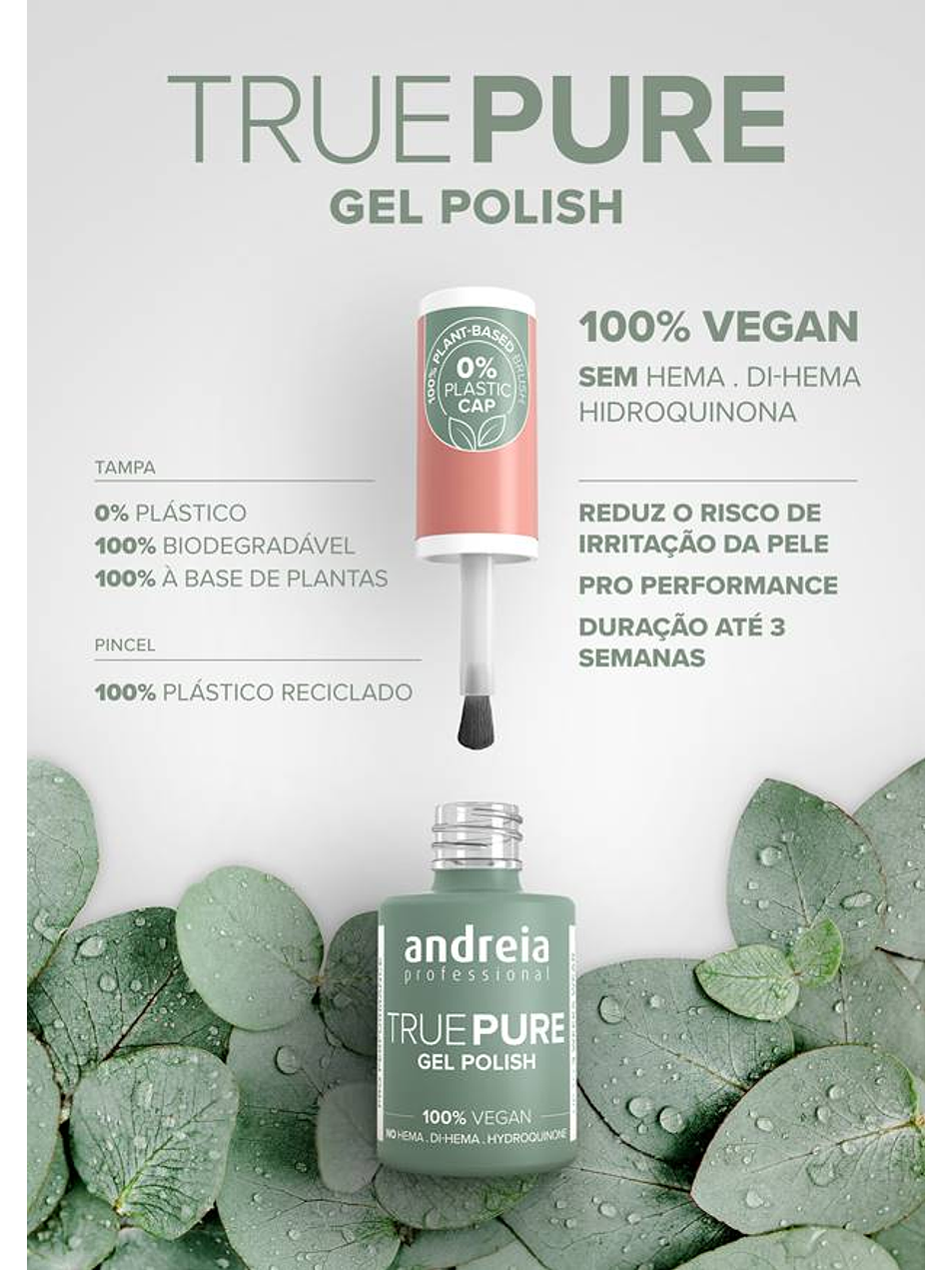 Verniz gel TRUE PURE - a solução perfeita para unhas mais sensíveis, especialmente concebido para uma experiência suave, reduzindo a probabilidade de alergias/irritações, graças à sua fórmula inovadora, livre de HEMA, Di-HEMA e hidroquinona.